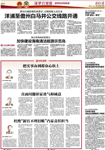 | 海南日报 逐梦自贸港省两会特别报道 004 2020-01-201 2020年01月20日 星期一 |