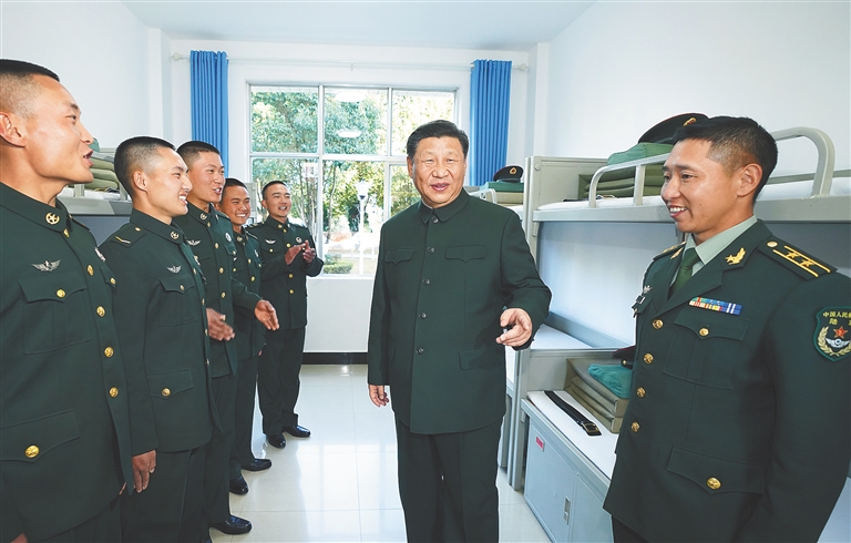 新年伊始,万象更新。云南大地山青水碧,处处生机盎然。19日下午6时许,习近平来到驻守在我国西南边陲的某边防营,走进战士宿舍,同大家亲切交流,详细询问他们的工作和生活情况。在营卫生所,习近平听取有关情况介绍,得知边防部队医疗条件不断改善,能够有效保障官兵日常需求,习近平很欣慰。