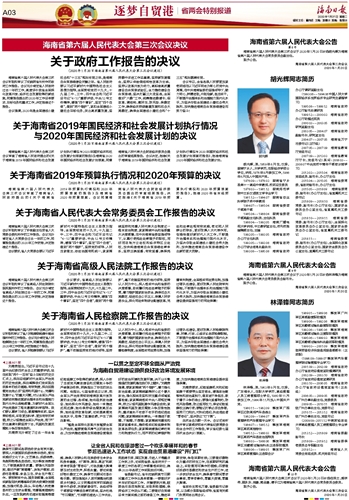 海南日报 逐梦自贸港省两会特别报道 003 2020-01-211 2020年01月21日 星期二