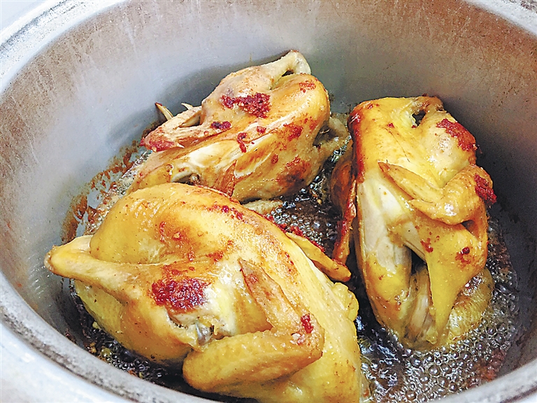 从湾岭互通下去就到了湾岭镇,不少游客是奔着湾岭鸡而来的。黄澄澄、油滋滋、带着浓浓蒜香味的湾岭油焗鸡,是继琼中小黄牛后的又一道琼中名菜,更是湾岭镇的头牌名片。