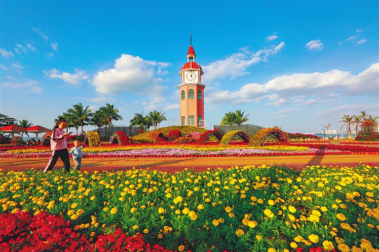 春节临近,海口西海岸景观带被花海装扮得非常漂亮。