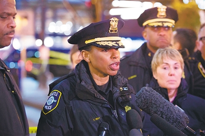 卡门·贝斯特说,“这并非随机事件”,多人在一家快餐店前发生争执,引发枪战。这也是西雅图市区两天内发生的第三起枪击案件。新华社/法新