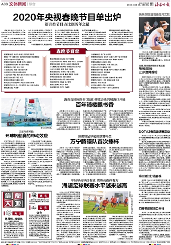 海南日报 文体新闻综合 008 2020-01-241 2020年01月24日 星期五