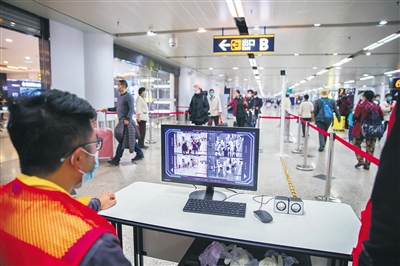 1月26日下午,为做好新型冠状病毒感染肺炎疫情防控工作,海口美兰国际机场在旅客到达厅出口安装红外成像检测测温门,对所有到港旅客进行体温监测。