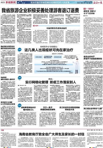 海南日报 本省新闻坚决打赢打好新型肺炎疫情防控的人民战争 003 2020-01-271 2020年01月27日 星期一