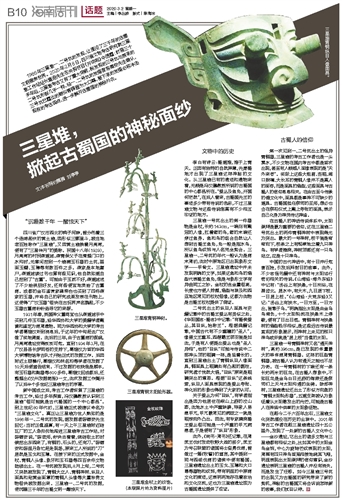 李白有诗云:蜀道难,难于上青天。正因有独特的自然屏障,先秦蜀地才出现了三星堆这样神秘的文化。从三星堆已有的遗迹和遗物来看,无疑是冯汉骥教授所说的古蜀国的中心都邑所在。“蚕丛及鱼凫,开国何茫然”,在后人看来,古蜀国先王的事迹多少带有传说的色彩,不过三星堆文物与这些传说倒真有不少相互印证的地方。
