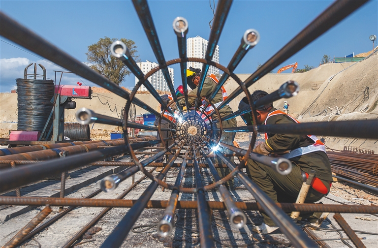 大悦环球中心项目是海南自由贸易港三亚中央商务区首批项目,规划总占地面积122亩,分三期开发建设。今年春节期间,该项目工地有30多名工人坚守岗位施工。目前,已有200多名工人返岗。 本报记者 武威 摄