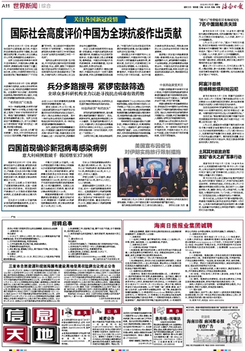 | 海南日报 世界新闻综合 011 2020-03-021 2020年03月02日 星期一 |