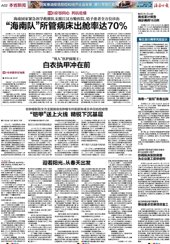 | 海南日报 本省新闻统筹推进疫情防控和经济社会发展 奋力夺取双胜利 002 2020-03-021 2020年03月02日 星期一 |