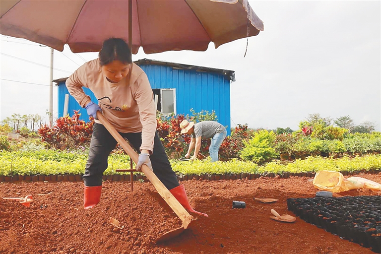 3月1日上午,琼山区云龙镇云北路两侧,云阁村近9000亩的花卉基地内满是盛开的鲜花,处处可见花卉工人忙碌的影子。“过几天,就要培育新的种苗,我们得提前准备好培育土皿。”2月6日,为了不耽误开春的工期,来自江西的简建申和妻子就已返回云阁村,一边自我隔离,一边在自家的苗圃劳作,为花卉移栽做准备。