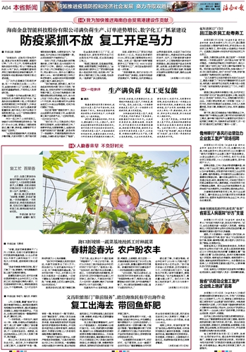 海南日报 本省新闻统筹推进疫情防控和经济社会发展 奋力夺取双胜利 004 2020-03-041 2020年03月04日 星期三