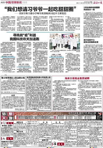 海南日报 中国/世界新闻综合 009 2020-03-041 2020年03月04日 星期三