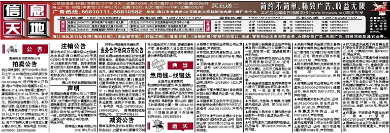 海南美林拍卖有限公司拍卖公告(20200313 期)
