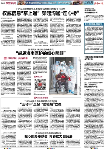 海南日报 本省新闻统筹推进疫情防控和经济社会发展 奋力夺取双胜利 005 2020-03-051 2020年03月05日 星期四