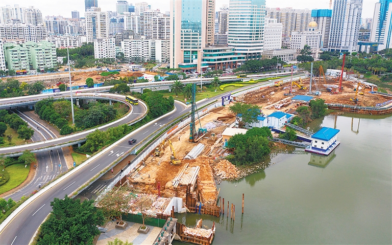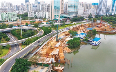 日前,海口龙昆沟北雨水排涝泵站项目建设现场一派忙碌。