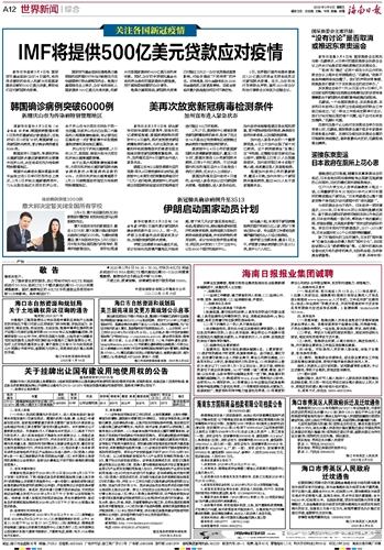 海南日报 世界新闻综合 012 2020-03-061 2020年03月06日 星期五