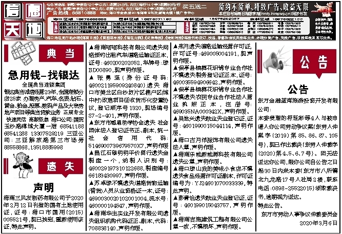 海南省海口市中级人民法院公告