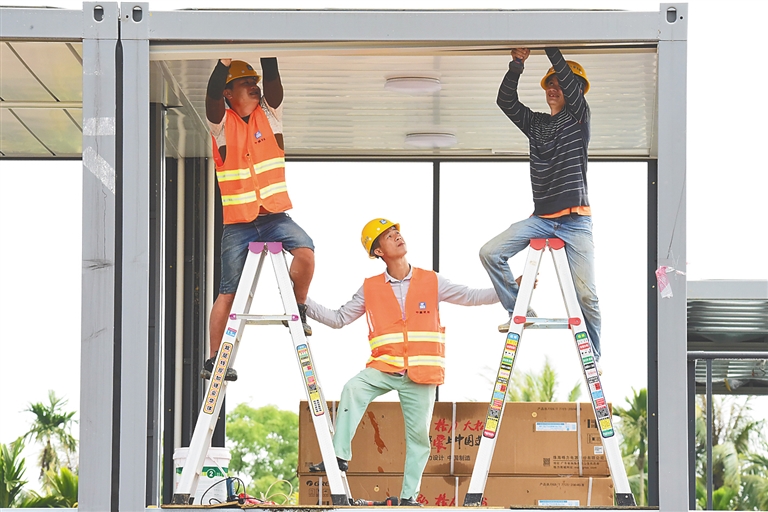 3月6日,在琼海市博鳌乐城国际医疗旅游先行区一工地,工人在加紧施工赶进度。据介绍,目前,琼海共受理复工项目申请82个,其中政府项目投资62个、社会投资项目20个,这些项目已全面复工。特约记者 蒙钟德 摄