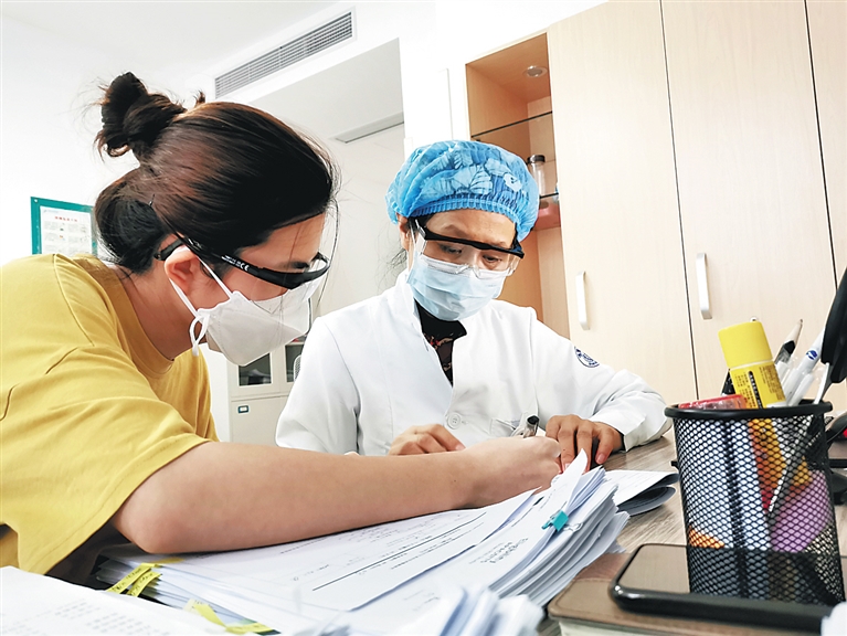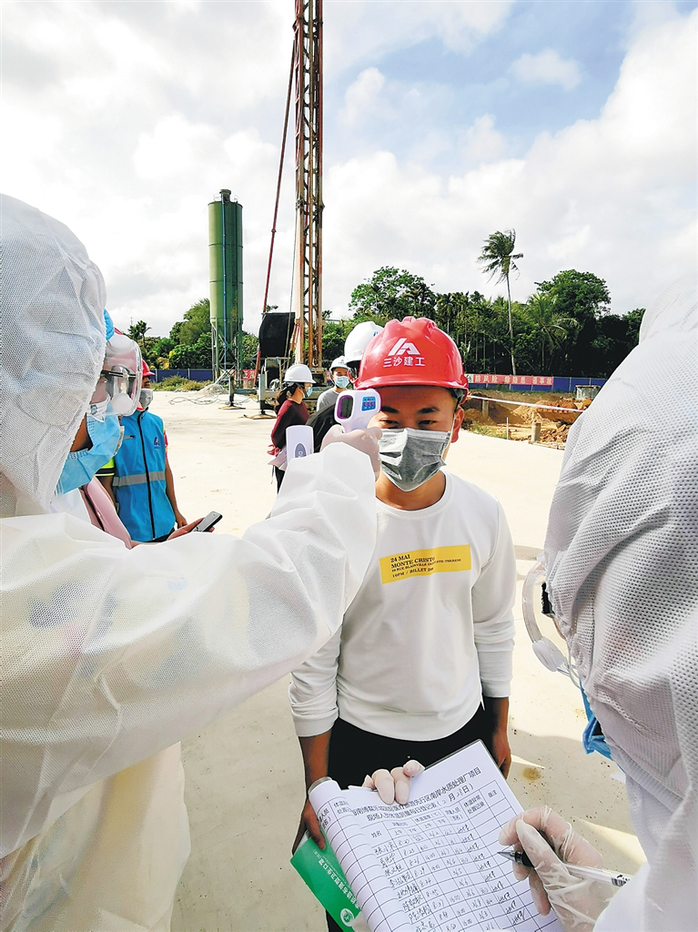 ① 医疗志愿者为园区内复工复产项目提供健康管理服务。