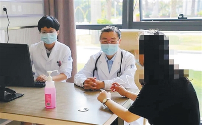 ② 博鳌超级医院耳科专家张劲与患者交流病情。