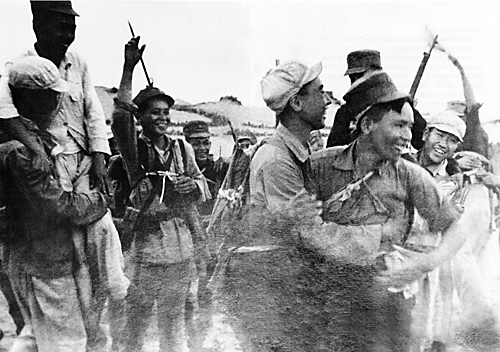 在野战军两个加强营胜利登陆不久,40军352团的两个排在雷州半岛海面上执行任务时,被海风和潮流漂过琼州海峡,他们便果断地登陆,得到儋县一区党政组织和民兵的及时接应,共同打退了国民党军1个营的进攻,安全进入解放区。(陈蔚林/辑)