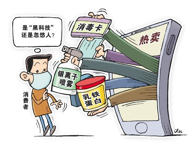 专家表示,一些商家搭上预防新冠肺炎的顺风车,夸大产品功效,误导消费者购买使用,在一定程度上会对消费者的身体健康产生威胁。