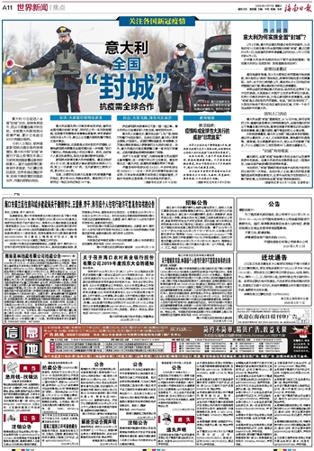 海南日报 世界新闻焦点 011 2020-03-111 2020年03月11日 星期三