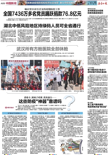 海南日报 中国新闻 统筹推进疫情防控和经济社会发展 奋力夺取双胜利 008 2020-03-111 2020年03月11日 星期三