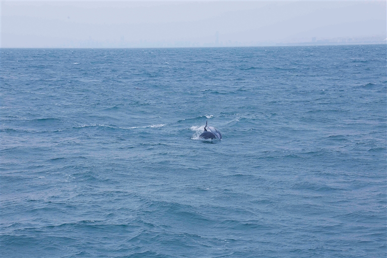 经观察,该区域约有60只至70只海豚。因海豚群出现海域位于航道附近,极易被周边过往船只碰撞,为确保海豚群的安全,该艇决定减速伴航,历时约1小时成功护送其至安全海域。