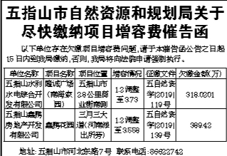 五指山市自然资源和规划局关于尽快缴纳项目增容费催告函