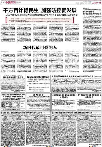 海南日报 中国新闻时政 010 2020-03-131 2020年03月13日 星期五