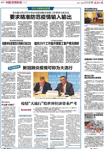 海南日报 中国/世界新闻综合 011 2020-03-131 2020年03月13日 星期五