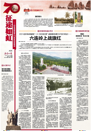 这也是一座赤色浸润血脉深处的山脉——六连岭革命根据地从1927年创建至1950年海南岛解放,自始至终都是红色天地,创造了琼崖革命“二十三年红旗不倒”的奇迹。