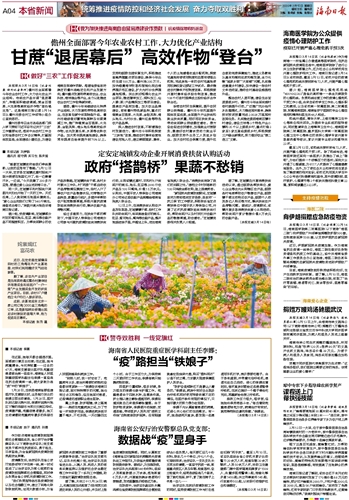 海南日报 本省新闻 统筹推进疫情防控和经济社会发展 奋力夺取双胜利 004 2020-03-151 2020年03月15日 星期日