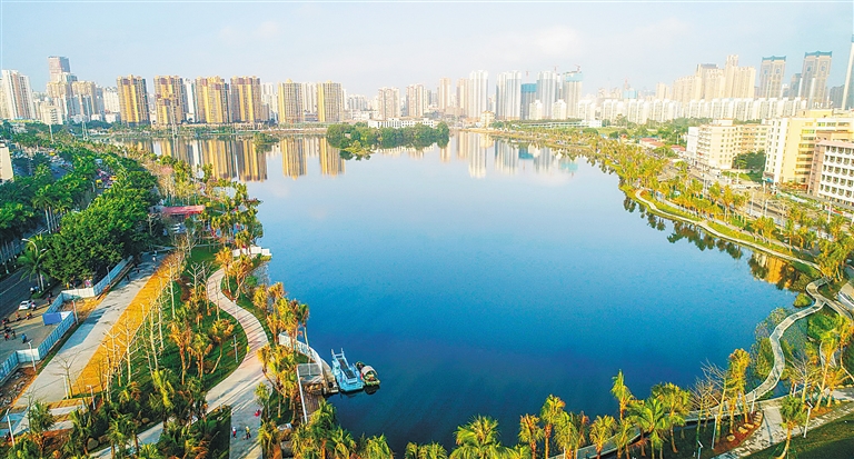 近日,改造后的海口红城湖公园,颜值飙升,惊艳市民游人。