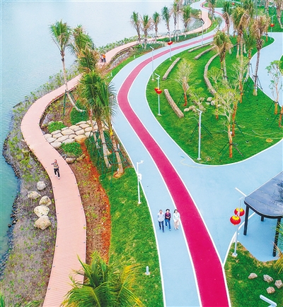 经过多年的努力,海口城区金牛岭公园、万绿园、白沙门公园、滨海公园、凤翔湿地公园相继建成之后,主城核心区再增添这座红城湖公园,风景宜人的湖光水色,倒映着蓝天白云、繁花椰林,让这座城市的生态优势更加凸显,城市品位和形象不断提升。