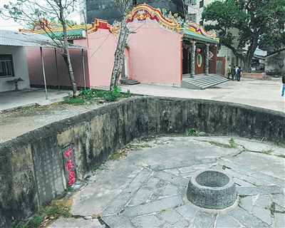 祖庙另一侧是被石墙环形围住的竹根泉井。据说,竹根泉井系进士唐胄被罢官后所凿,旁边石碑上的“竹根泉”三字亦是其亲笔题写。这块石碑旁又有一块刻于民国的石碑。从石碑内容来看,“非惟止咳,德浴心清”是后人对竹根泉井的定义。