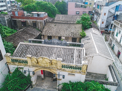 从上丹路入口进入,往里走几百米,就能看见“西洲书院”的指示牌。顺着路牌往左拐,一棵百年树龄的高山榕长势参天,郁郁葱葱。