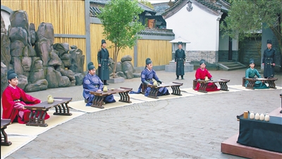关于唐代官袍的服色,在《酉阳杂俎·语资》中还记有一则故事。说的是唐玄宗在泰山举行封禅大典,宰相张说为封禅使。根据封禅的旧例,大典完成后,参加的官员自三公以下全部官升一级。张说的女婿郑镒本是九品小官,着“青衫”,张说公权私用,将郑镒“骤迁五品,兼赐绯服”。唐玄宗看到郑镒突然从“青衫”变为“绯服”,“怪而问之,镒无词以对”。大臣黄幡绰曰:“此泰山之力也。”“泰山”既指封禅又借指岳父,一语双关,此事不久便在朝野传为笑话。