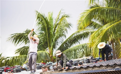 琼海市博鳌镇东屿岛,椰林掩映下,潺潺水流旁,一片由海南民居风格建筑组成的院落初具雏形,这是正在加快建设的博鳌亚洲论坛公园。3月13日,海南气温回升,工人们戴着口罩忙得热火朝天,有的在室外参与景观园林的布局调整,有的忙着室内装修。