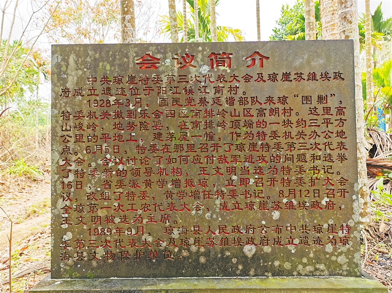 1928年8月12日,琼崖60多名工农兵代表在高朗村表决了一件具有划时代意义的大事——成立琼崖苏维埃政府。自这一天起,禁锢琼崖人民的旧制度被推翻,劳苦大众第一次实现当家作主。