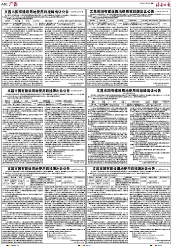 | 文昌市国有建设用地使用权挂牌出让公告 | |