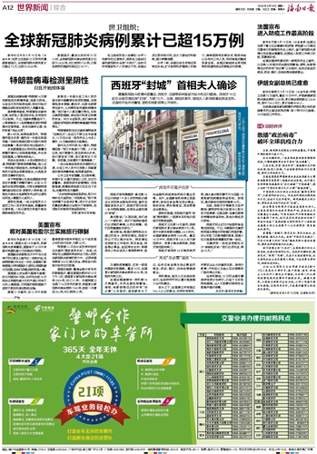 | 海南日报 世界新闻综合 012 2020-03-161 2020年03月16日 星期一 |