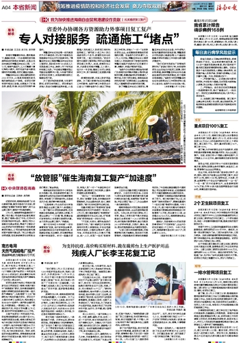 | 海南日报 本省新闻统筹推进疫情防控和经济社会发展 奋力夺取双胜利 004 2020-03-161 2020年03月16日 星期一 |