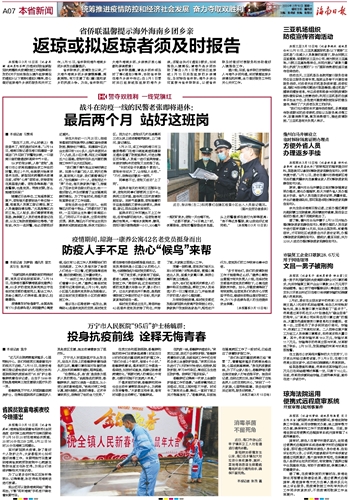 | 海南日报 本省新闻统筹推进疫情防控和经济社会发展 奋力夺取双胜利 007 2020-03-161 2020年03月16日 星期一 |