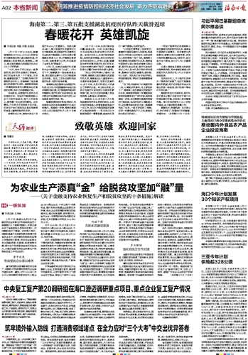 海南日报 本省新闻统筹推进疫情防控和经济社会发展 奋力夺取双胜利 002 2020-03-181 2020年03月18日 星期三
