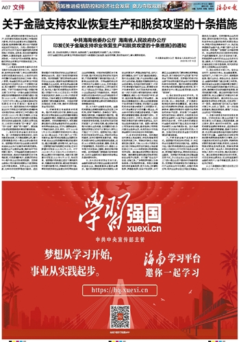 中共海南省委办公厅 海南省人民政府办公厅 印发《关于金融支持农业恢复生产和脱贫攻坚的十条措施》的通知
