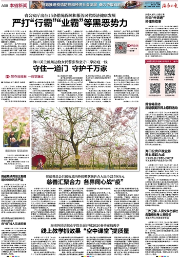 海南日报 本省新闻统筹推进疫情防控和经济社会发展 奋力夺取双胜利 008 2020-03-181 2020年03月18日 星期三