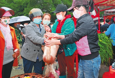 干部职工踊跃购买,为村民排忧解难,增加脱贫户的收入。近日,在王五镇消费扶贫活动现场,王五镇政府干部职工、乡村振兴工作队员除了带头消费外,还当上了临时“销售员”,亲自上阵帮助贫困户销售产品,短短几个小时,老母鸭、小种鸡、野生蜂蜜、鸡蛋、鸭蛋、朝天椒、西瓜、豆角、茄子、地瓜、青菜等多种产品先后售罄。