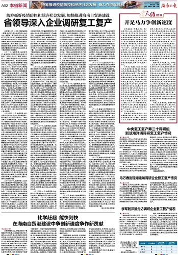 中央复工复产第二十调研组 到琼海洋浦调研复工复产情况
